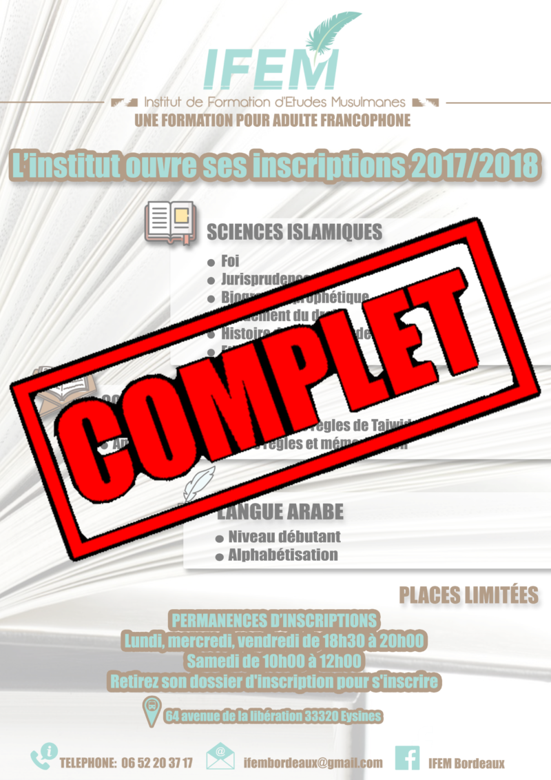 L’équipe de l’IFEM vous annonce la clôture des inscriptions pour l’année 2017/2018.